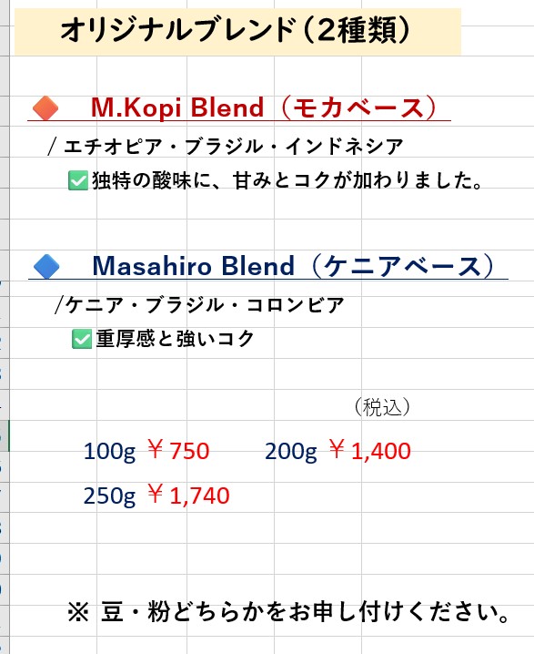 当店のオリジナルブレンドもご用意しております。当店こだわりのコーヒーを、ぜひ一度ご賞味ください。