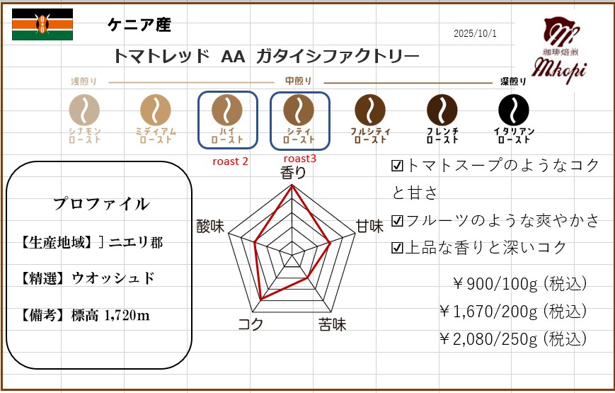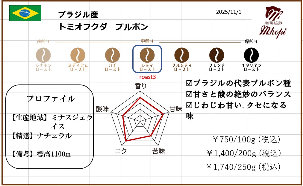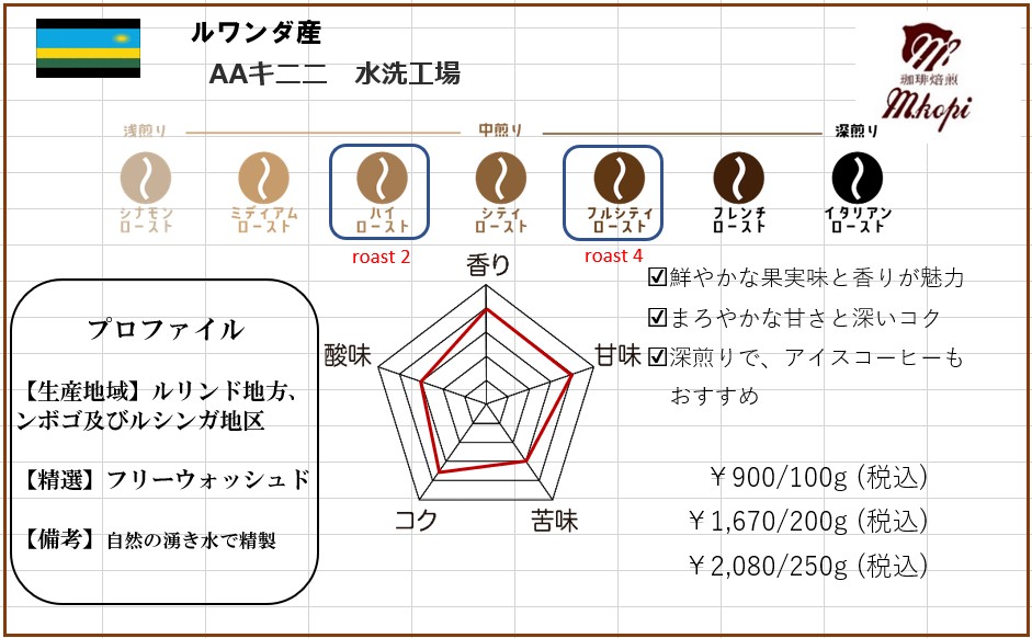 オーナーが世界各国から厳選したコーヒー豆を取り寄せ、注文をいただいてからお客様のお好みに合わせて焙煎いたします。下記に定番豆の種類と味・おすすめの焙煎具合をまとめております。下記以外の種類についても在庫がある場合がございますので、詳しくは入荷情報&お知らせをご覧ください。(入荷状況等により欠品が出る場合がありますので、ご了承願います。)